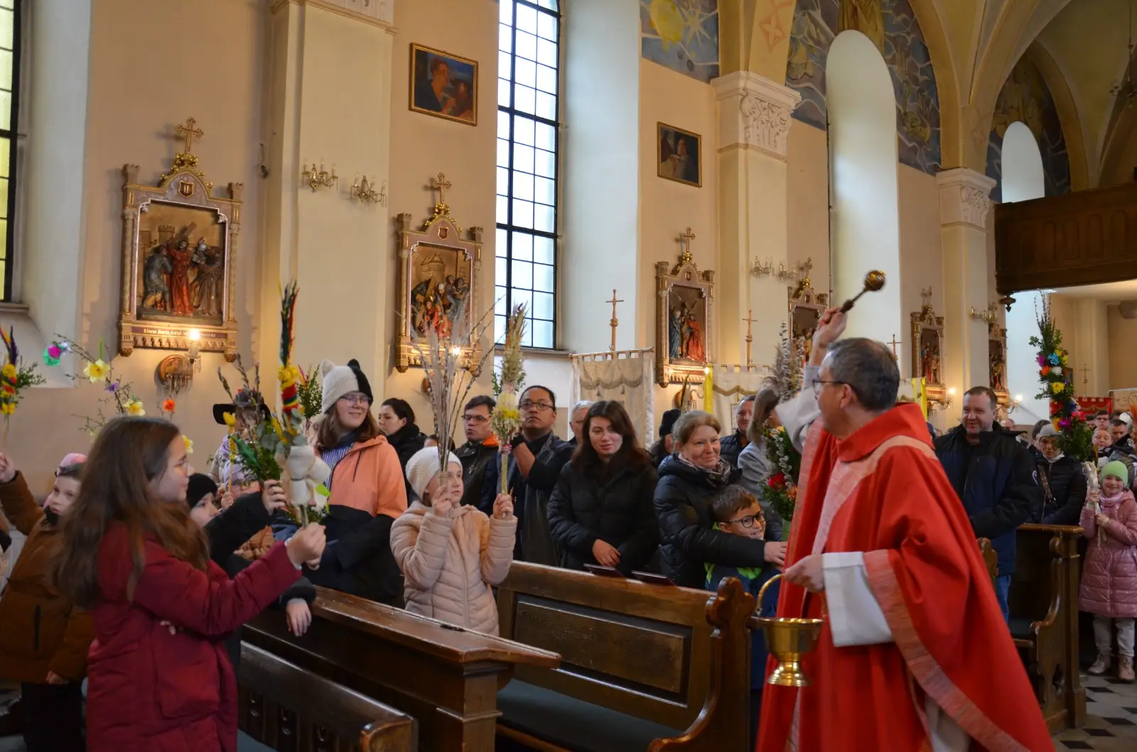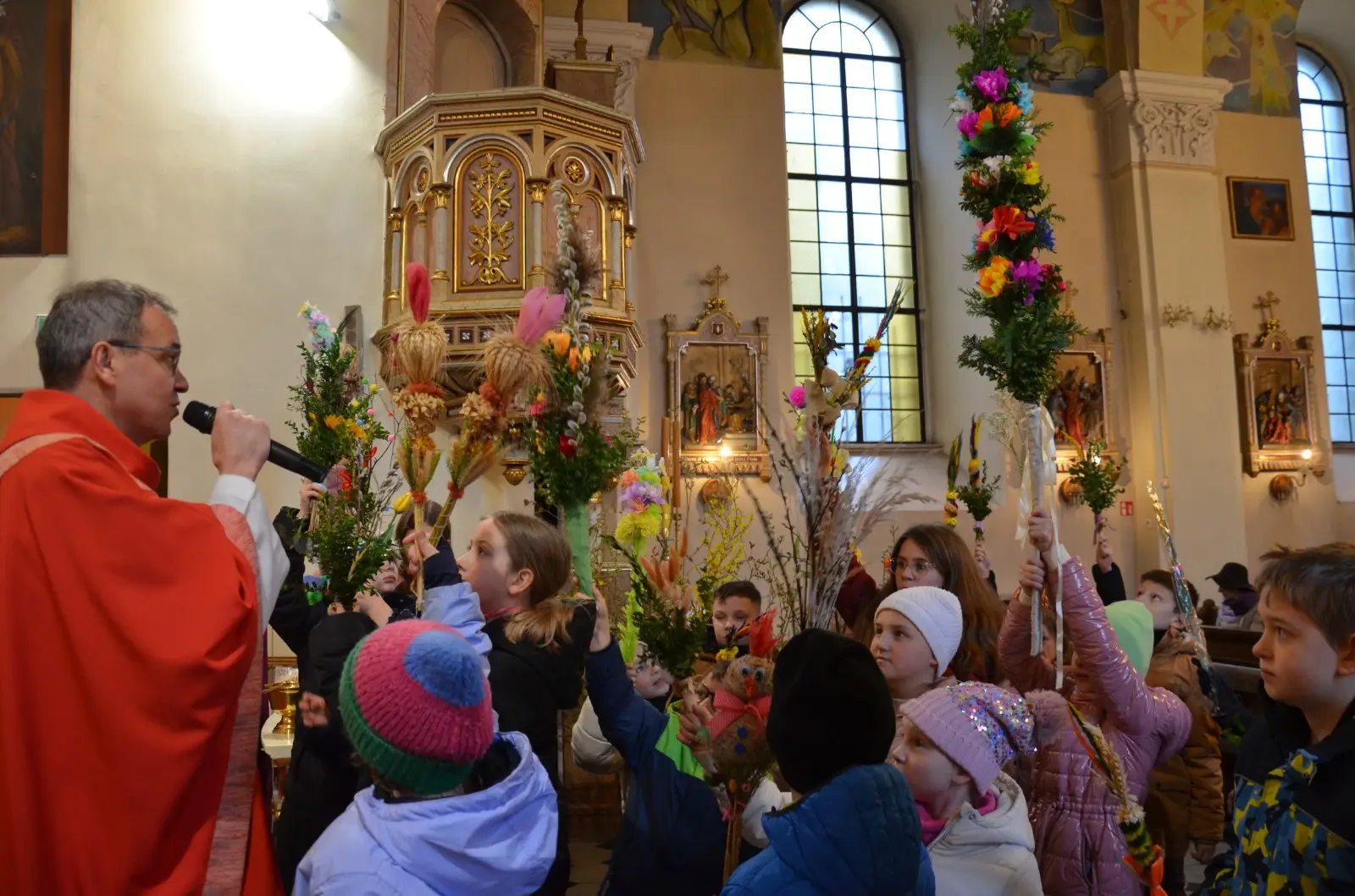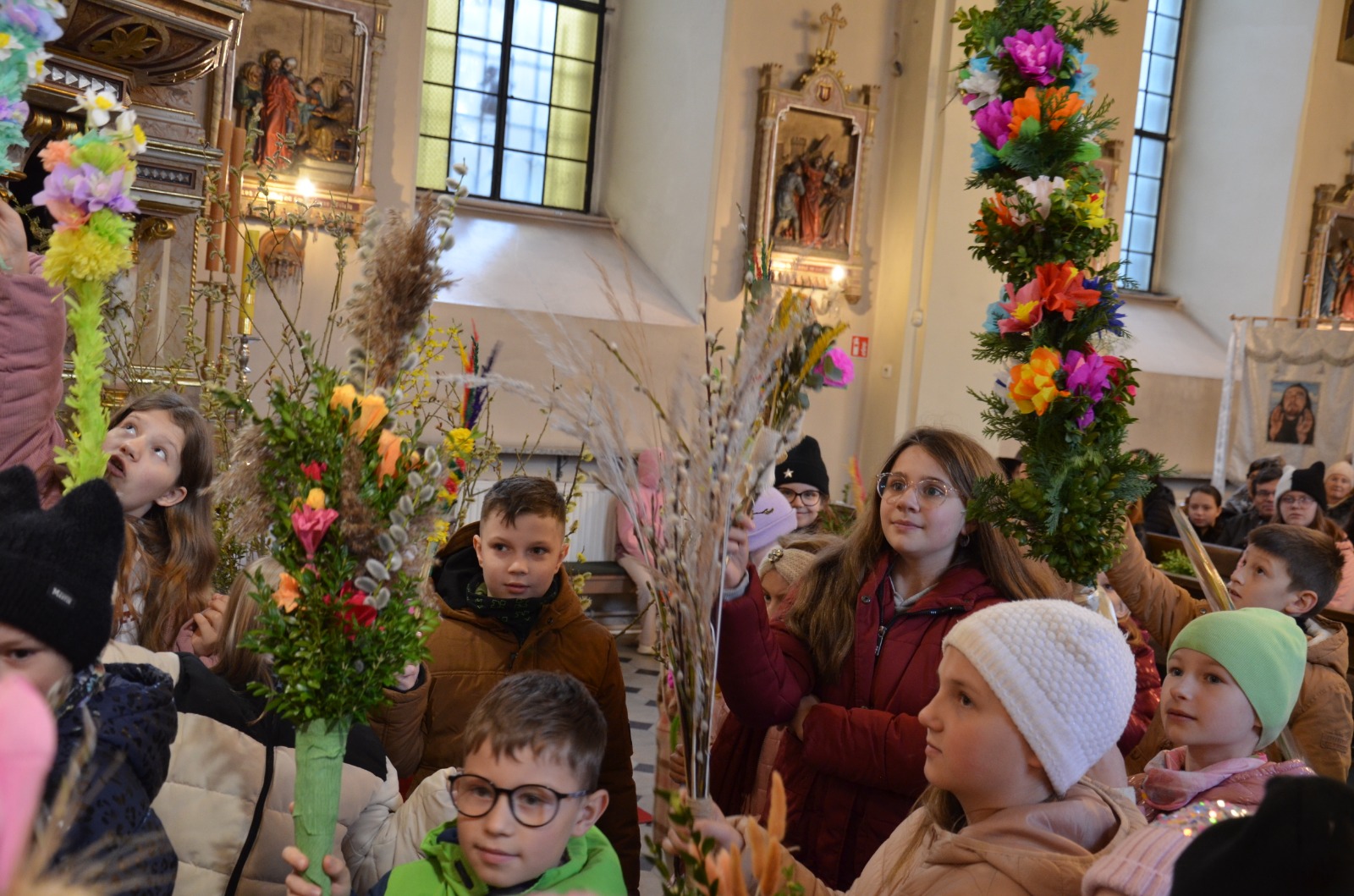 W Niedzielę Palmową – Męki Pańskiej 29.03.2026, przeżywaliśmy wspólnie pamiątkę wjazdu Jezusa do Jerozolimy. Zorganizowaliśmy konkurs dla dzieci i rodziców na najładniejszą własnoręcznie zrobioną palmę. Na Eucharystii o godz. 11:30 zostały przyznane nagrody – maskotki z których główną była „Owieczka Magda”, towarzysząca nam przez cały rok na Niedzielnych Mszach dla Dzieci. Wszystkim dziękujemy za obecność i zaangażowanie. Zapraszamy serdecznie na Triduum Paschalne w Wielki Czwartek i Piątek na godz. 18:00 i Wielką Sobotę na godz. 20:00, prosimy o zabranie ze sobą świec – paschalików, istnieje możliwość nabycia ich w zakrystii przed Liturgią Światła w Wielką Sobotę. Z serca zapraszamy wszystkich do wspólnej modlitwy. Zgromadźmy się wokół Światłości Świata – Jezusach Chrystusa Zmartwychwstałego, aby uwielbić go za ten największy cud i dar nam ofiarowany.