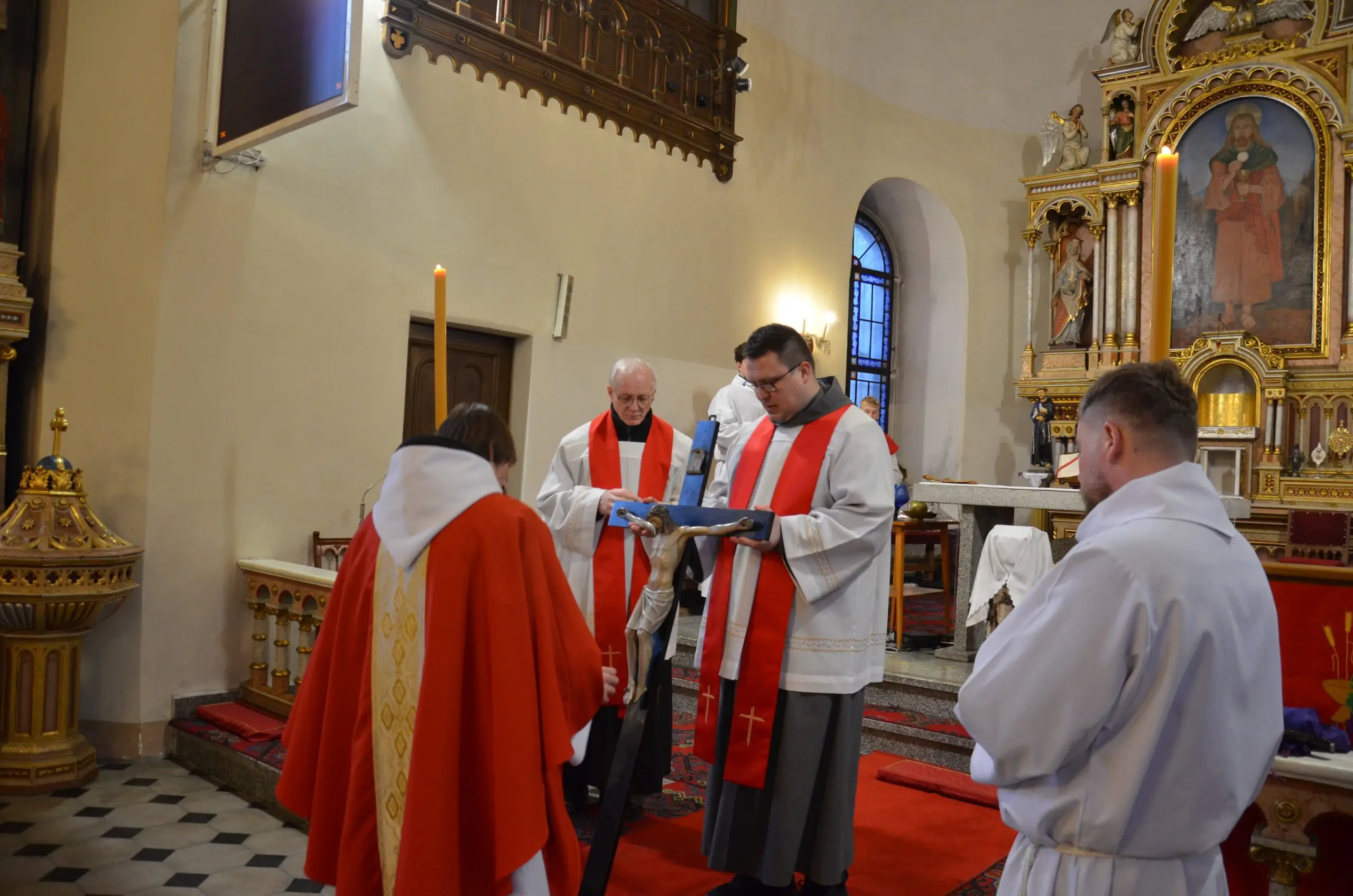 W Wielki Piątek 3 kwietnia 2026 Liturgię Męki Pańskiej w kościele p.w. Bożego Ciała sprawował o. Daniel Chrzanowski OFMConv, a w kościele p.w. Niepokalanego Serca Najświętszej Maryi Panny w Szklarskiej Porębie Dolnej o. Krzysztof Jackiewicz OFMConv. Dziękujemy wszystkim zaangażowanym w budowę grobu i ciemnicy, czytającym Mękę Pańską i uczestniczącym w wspólnej modlitwie i adoracji Krzyża. Z serca wszystkim Błogosławimy